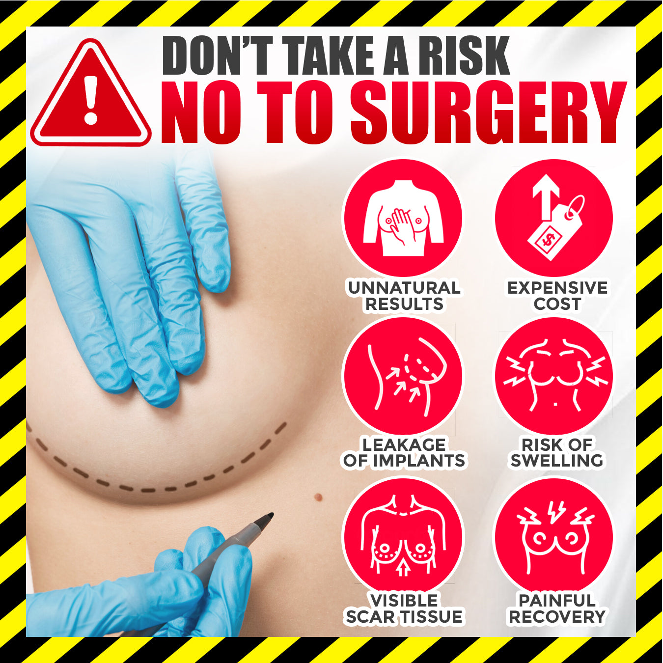 Avoid the high risks of invasive surgery, which involves downtime, scarring, and often results in unnatural, non-reversible looks. Choose natural science instead!ย