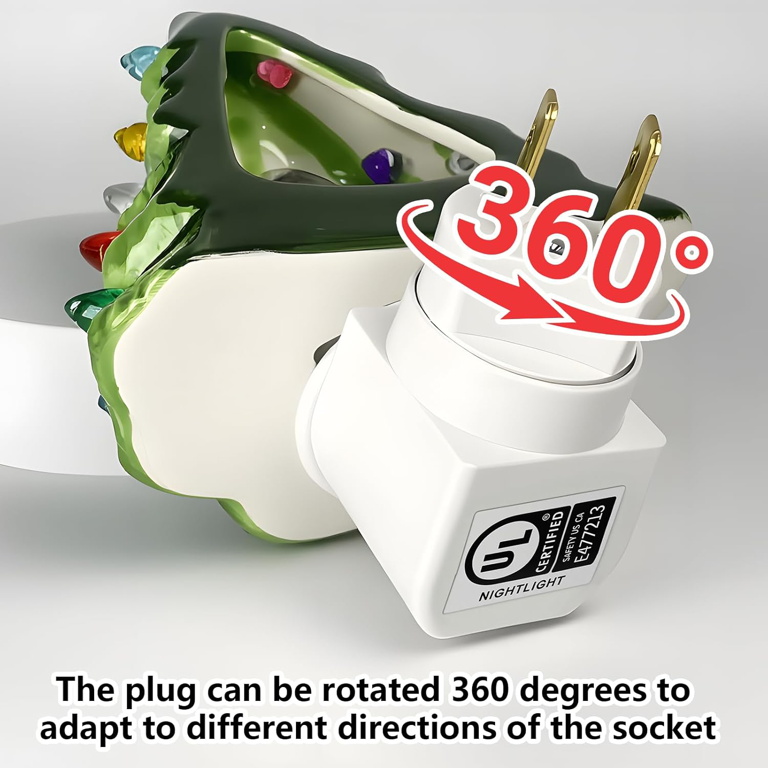Simple front switch of this christmas tree night light lets you flip the light on/off without unplugging. The innovative 360° swivel plug fits vertical and horizontal outlets or power strips, making your christmas night lights plug into wall easy to place anywhere.
