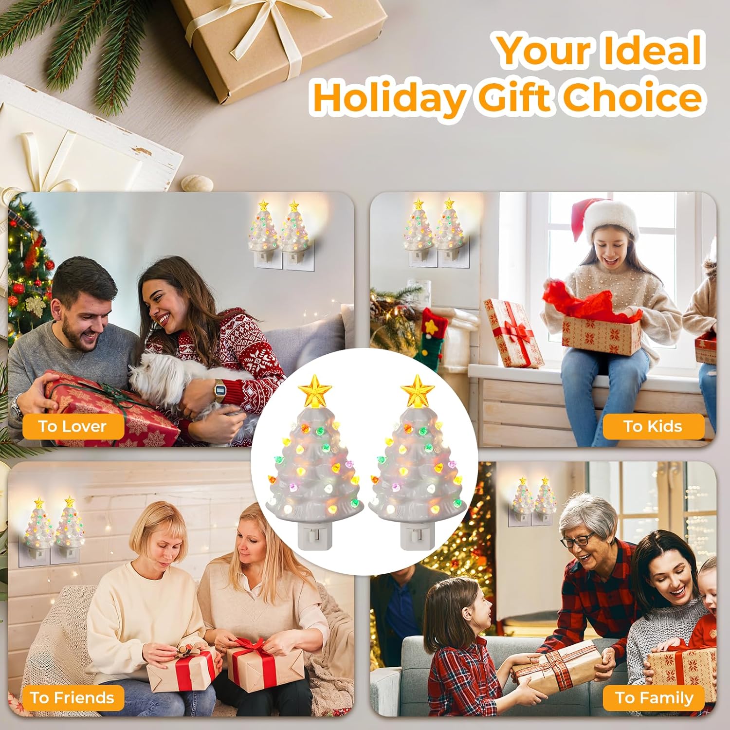 This ceramic christmas tree night light plug in features a timeless Christmas tree shape with a sparkling star topper, adding cozy holiday charm and festive warmth to any room.
